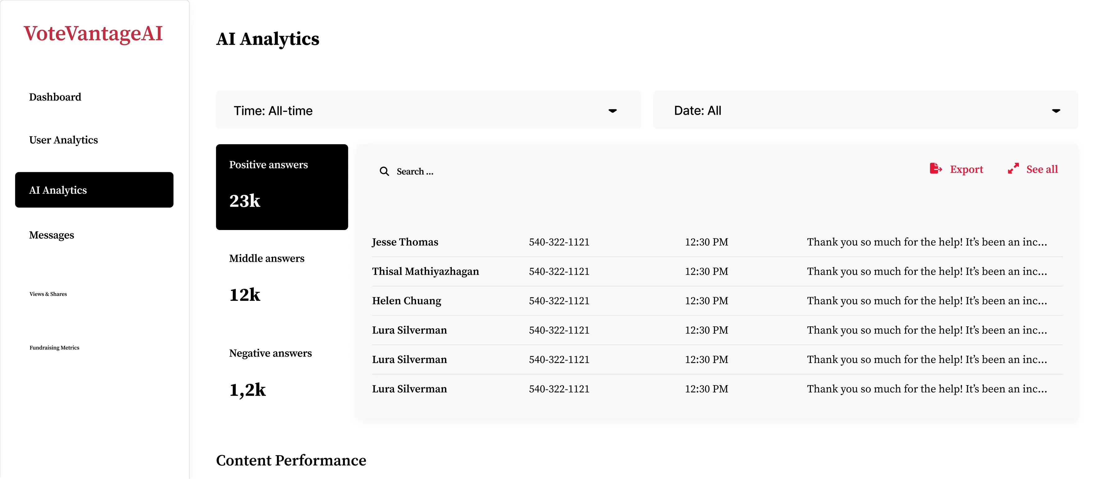 “With VoteVantageAI, we reached younger audiences through innovative AI engagement.”