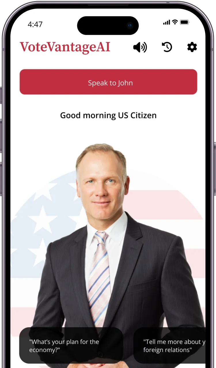 “VoteVantageAI transformed how we connect with voters. Our AI avatar handled thousands of questions, freeing up our team to focus on strategy”
